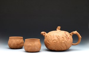 陈国良,2007年研高,中国陶瓷艺术大师。1972年进宜兴紫砂工艺厂,师从研高大师何道洪学艺。被誉为“紫砂四小龙”之一(另有江建翔、季益顺、施小马)。这把《松与灵芝》是陈国良大师薄胎代表作,极具收藏价值!