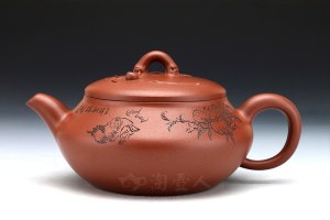 陈洪平,1959年生于江苏宜兴,江苏省陶瓷艺术大师(2016年 第二届)、2013年研高。1982年从事紫砂,1993年参加中央工艺美术学院陶瓷系进修,现于宜兴紫砂工艺厂从事紫砂陶艺创作。此款【汉铎(龙壶】壶身刻绘诗句,装饰着片片竹叶,松树,回纹玉带,深受人们的喜爱,盖款印章『陈洪平』,底款印章『摩莎自得』,老师用此章大意为“作品为老师用手一下一下堆砌,精心制作制作所得……”,代表作者对此作品的良苦用心。全手工制作典范,细节各处皆精致有感,情趣韵味高雅。