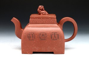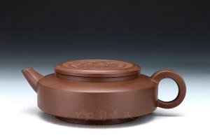 端庄大方,沉稳内敛。壶身扁圆,蓄势待发,矮直颈,壶盖向上鼓起,口盖吻合严密;圆珠钮、短弯流、耳形把敦厚肥大。 此器采用老师特有的大红袍朱泥制成,家藏老料,陈腐到位,泡养效果极佳!值得推荐!