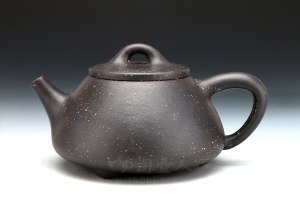 施小马,男,1954年生于宜兴,2003年高工,江苏省陶瓷艺术大师,实力派大师人物,被誉为“紫砂四小龙”之一(另有陈国良、季益顺、江建翔)。其父为施福生(紫砂工艺厂建厂元老之一,制壶名艺人),1971年进紫砂工艺厂随陈福渊学习。擅制方器,是一代方器高手,荣获“中国紫砂名人”称号。此器模仿汉代艺术风格,以简练的造型,彰显大气磅礴之态。壶身呈方形,嵌盖设计,吻合严密,气密性好,盖上方形桥钮与壶身相应,二弯流流基硕大,方耳把端正挺括,与壶身相应;壶身两面雕塑夔龙纹,既增添了壶的底蕴,也起到装饰作用。