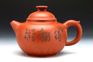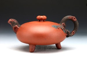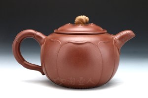 采用了原矿降坡泥制作而成,壶容量为500cc,此壶做工精美,造型古雅,且出落得美丽大方,整个壶筋纹明理清晰,明暗有度,而且比例协调,以葵花为壶钮,三弯流壶嘴,出水顺畅,耳形壶把,古朴自然。这些特点串结而成的此壶其观赏性更高,都可见老师技艺的高超。
