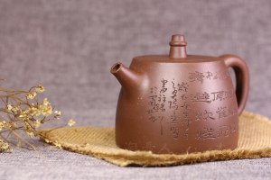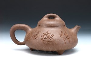 曹婉芬,2005年研高,中国陶瓷艺术大师,江苏省工艺美术大师。1955年进宜兴紫砂工艺厂,先师承先辈朱可心、后又随裴石民学艺,一度承著名艺人王寅春及顾景舟教泽。此壶为曹婉芬大师早期作品,制作于1990年,其子范建军老师刻绘装饰大气简洁的器型上,搭配古拙、浑厚的刻绘,很有力度!