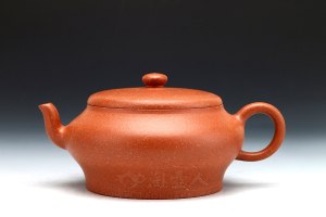 蒋蓉(1919- 2008),别号林凤,江苏省宜兴市川埠潜洛人。1995年被授予“中国工艺美术大师”称号。 蒋蓉11岁随父亲蒋鸿泉学艺,1940年由伯父蒋鸿高带至上海制作仿古紫砂器,曾为虞家花园设计制作花盆,擅长制作花塑器,被尊为“紫砂七老”之一。蒋蓉老师这把《青蛙荷花壶》,采用了原矿紫泥制作而成,壶容量为310cc,壶整体好似一个硕大的荷花苞蕾,似放似收,片片的荷叶围绕圈成壶身,线条柔美。流把壶嘴粗大似莲花盘根,出水爽快一泻千里。而此壶的点睛之笔在于壶盖之处,莲台的造型,其中莲子累累,颗粒分明。