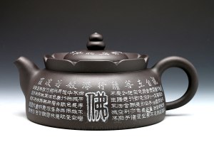 采用了原矿黑泥制作而成,壶容量为650cc,沈汉生老师这款《佛缘》壶,手工制壶,泥料与壶身描银陶刻经文黑白映衬,简洁大气,肃穆端庄,形意简洁,弯流壶嘴,出水顺畅,耳形壶把,端握合适,壶颈塑毗卢帽沿,元钱盖上葫芦钮,内蕴厚重。