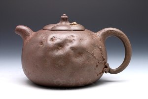 沈汉生,字石羽,1946年生,2005年研高,江苏省工艺美术大师、江苏省陶瓷艺术大师、江苏省工艺美术名人;1959年进厂,师从范泽林、谈尧坤前辈;1960年跟著名陶刻大师任淦庭先生学艺,专功金石陶刻,铁笔传神,刀法精妙。作品多次获奖,收藏价值极高。采用了原矿黑泥制作而成,壶容量为680cc,壶身以圆形为基础,略有拉长,加铺砂圈足,高贵典雅,壶嘴和壶把造型工整,利落大方,壶把上加一环,别有韵味,截盖设计,盖上壶钮浑圆红润,似珠玉一颗,正应了壶铭“鸿运当头”,壶身色泽雍容华贵,内敛丰富。