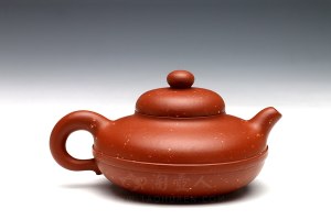 吕尧臣,独创“吕氏绞泥”出神入化,堪称一绝,有“壶艺魔术师”之称,作品造型新颖别致,做工细腻严谨,设计独特出众。1941年生于宜兴,2005年研高,中国工艺美术大师,随紫砂名家吴云根学艺。四十余年的陶艺生涯,新品层出,风格韵秀而古朴。采用了原一厂老红泥制作而成,壶容量为180cc,线月即线圆款,为晚清民国经典壶式之一。壶底简洁,为一捺底,圆珠钮与盖浑然一体,从上到下的美妙气息逐渐扩散,整个壶在扁圆中富于韵味。