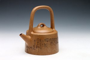 吴群祥,1954年生于宜兴,2012年高工。江苏省陶瓷艺术大师。1972进紫砂工艺厂,启蒙大师乃当今壶艺大师吕尧臣先生,且深得顾景舟大师赏识,得以入室拜师,并得其真传。主修陶瓷造型设计,其作品造壶艺风日趋成熟,风格鲜明,讲究线条流畅和谐,形体比例协调恰当,气势凝重而端庄,色泽深沉而朴茂,工艺精巧而大方,每有新品问世,必为世人青睐珍藏。采用了原矿紫泥制作而成,壶容量为500cc,整个的线条柔和流畅,简单却不失大雅,桥型壶钮,飞天把,二弯流壶嘴,出水顺畅,形象生动,整体构思严谨,有层次感。