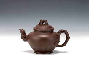 吴群祥,1954年生于宜兴,2012年高工,江苏省陶瓷艺术大师。1972进紫砂工艺厂,启蒙大师乃当今壶艺大师吕尧臣先生,且深得顾景舟大师赏识,得以入室拜师,并得其真传。主修陶瓷造型设计,其作品造壶艺风日趋成熟,风格鲜明,讲究线条流畅和谐,形体比例协调恰当,气势凝重而端庄,色泽深沉而朴茂,工艺精巧而大方,每有新品问世,必为世人青睐珍藏。此款提神壶(寒越刻绘)采用了原一厂老黑料制作而成,壶容量为580cc,此款作品壶身线条优美,流把敦厚,简约而不简单,不失优雅之意,浑圆素朴的造型,淳朴自然,大巧若拙。两个