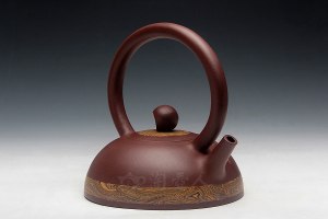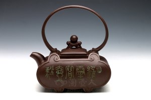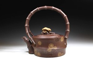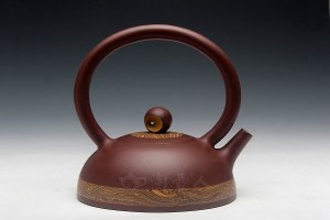 汪寅仙,女,1943年生于江苏宜兴,2005年研高,中国工艺美术大师,中国陶瓷艺术大师,江苏省“有突出贡献的中青年专家”,我国第一批国家非物质文化遗产名录项目之一紫砂制作技艺传承代表人,师从著名老艺人吴云根学习制壶技艺,后随朱可心学习研紫砂素塑器造型设计,抽象与自然写实相结合是她的壶艺风格。该壶以原矿紫泥制作而成的,壶容量为300CC,色泽沉重,深沉内敛。饱满的壶腹与鼓盖过渡自然,盖上做圆珠钮,二流壶嘴,出水流畅,耳形壶把,壶柄敦厚,端握适手。(此壶为为20世纪80年代中期老壶作品,老壶遇见都