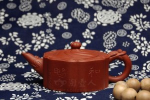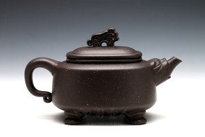此款《石耕大印包》壶为石耕老人经典力作!原一厂老料底槽清制成的660cc大品,壶身四方,方中藏圆,若包裹印玺的包袱,藏锋不露,大气凛然!嵌盖吻合严密,石耕老人制壶功力极佳!壶钮为包袱结,壶肩处更塑有自然散落的包袱皮,纹理清晰,褶皱细致立体,精品力荐!