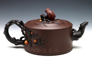 袁国强,2013年高工,首届“景舟杯”金奖得主,九十年代初从师高级工艺美术师张庆臣,以仿制传统作品入门,与亲弟袁小强期间得到工艺美术大师何道洪的悉心指教。1970年生于宜兴,八十年代末期学艺,至今二十年。壶身扁圆,饱满丰盈;口盖沿子母线吻合一致。流、把、纽饱满敦厚弧度自然,且相呼应。该壶对曲线的把握十分老练,且有道洪之风,实用性与观赏性俱佳,堪为佳器!