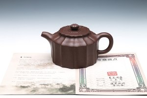 宜兴紫砂壶名家袁国强作品《月色菱花》 袁国强,2013年高工,首届“景舟杯”金奖得主,九十年代初从师高级工艺美术师张庆臣,以仿制传统作品入门,与亲弟袁小强期间得到工艺美术大师何道洪的悉心指教。1970年生于宜兴,八十年代末期学艺,至今二十年。