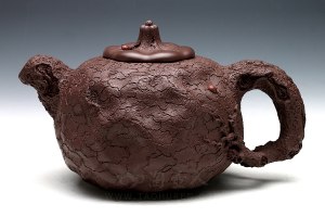 袁国强,2013年高工,首届“景舟杯”金奖得主,九十年代初从师高级工艺美术师张庆臣,以仿制传统作品入门,与亲弟袁小强期间得到工艺美术大师何道洪的悉心指教。1970年生于宜兴,八十年代末期学艺,至今二十年。《月色菱花》是袁国强老师参加景舟杯的获奖作品。该壶将传统筋纹器与提梁相结合,造型优美,婀娜多姿。12瓣筋囊镶嵌成壶身,线条清晰流畅,张力十足;自壶纽至壶底皆以筋纹一以贯之,提梁把与壶身形成的虚空间婉约优美,如同一轮圆月。【景舟杯的金奖作品,2016.6.3日北京瀚海拍卖以10万落槌价成交!不含