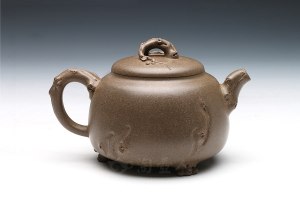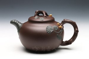 周伯娟老师, 2011年国工, 擅长绞泥,被业界称为“秘色绞泥技法第一人”。2012年正式拜于禅画大师张大华先生门下,成为齐(白石)派艺术第四代传人。壶身精选大自然中秀丽的湘妃竹为形,周伯娟老师采用绞泥螺旋纹作湘妃竹的斑纹特征,赏心悦目。