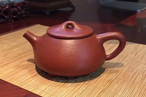 石瓢是紫砂经典器型之一,该壶壶身呈梯形,曲线柔和流畅,造型浑厚朴拙。足为钉足呈三角鼎立状支撑,壶身八字造型,直流,简洁见力度,多为暗接处理,溶于壶身整体。把多呈倒三角势,与壶身之型互补,形成和谐的美学效果。此器制作精制,一丝不苟,选用老师家藏原矿朱泥,壶身褶皱自然美好,泡养效果佳,值得推荐!
