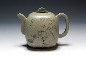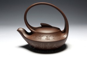 此壶以古代传说为题材,将壶体化作一只雄鹰,造型新颖独特,令人叫绝。细观此壶,以鹰嘴作壶流,翅膀作壶钮,鹰尾作壶把,各部衔接自然,浑然天成。以壶身的一面和手把倾斜四十五度,呈现出风向的动感,嵌盖契合严密,的子上的翅膀刻画入微,层次分明;壶身运用绞泥工艺,更觉气势逼人。