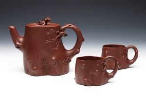 沈建宏,绝对的实力派中青年陶艺家。江苏省工艺美术大师陈国良亲传弟子,所制作品以花器为主,尤擅供春,被称为“供春王子”。此套壶以梅为题材,布局自然,线条优美,是不可多得的藏用良器!