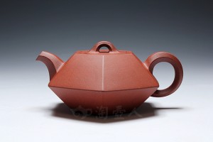 邵顺生老师此款《思圣提梁》壶,将全手方器成型工艺精致演绎,壶体八面镶接成型,线面挺括、层次分明,整器挺秀明快,别具一格!壶肩制作工艺繁复,口、身之间层层递进,流畅的线条勾勒出层次分明的多面,壶盖的线条利落分割,形成凹凸有致的盖面,壶钮多面切割,若钻石熠熠生辉,壶体陶刻连绵的山水风景,此器甚美!