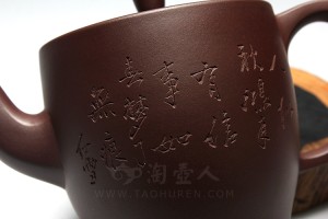 束旦生,字石雪,研高,师从任淦庭、谈尧坤老艺人,善创作设计制陶,尤擅长陶刻。对书法、绘画、篆刻、陶艺、紫砂史等方面均有独到研究,被誉为“艺术成就陶艺家”。此款《荆泉》壶体颀长高挺,壶韵充沛而骨力最佳,可藏用良器。