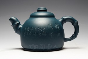 吴永明老师这把“有容”壶,原矿绿泥制壶,色泽墨绿,与竹节流把钮、陶刻翠竹装饰相呼应,整壶气韵和合。壶式正面陶刻“穆如清风”,侧钤“甘露润香喉,清风两腋生”,反面刻一株瘦竹,旁刻“清风徐来,静心闲品也”。赏壶品茶,实在清雅非凡也……