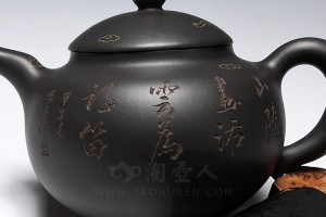 汤先武,2013年国工, 与宜兴紫砂艺人范泽锋共同学习紫砂工艺的创作 ,这把《秀德》壶原矿底槽清制成,经过还原烧工艺烧成,泥色灰黑透亮, 质朴厚重。壶体气韵饱满,各部比例协调,衔接自然左右贯通,有一气呵成之势也,可见工精艺谨。