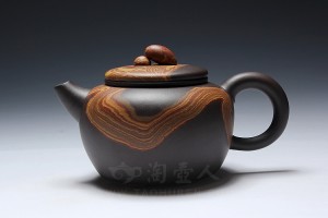 这款全手梨形壶选用稀有原矿铁砂泥制成,透气性好,手感极佳,养壶数日之后则成色如墨。壶身砂感细腻,砂粒点点好比黄澄澄的大鸭梨上遍布的褐色星点,壶身拟一只饱满多汁的梨子,截盖贴合,的子若梨把挺翘自然,流与把自肩部胥出,毫无突兀感,又向两边延伸,顿觉张力无限,空间感十足。