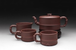 潘明星老师现为国工,先后师从张玉林、研高储集泉,专注于花货制作与造型设计,精于全手工制壶,其作品内蕴充沛,深受壶友喜爱。此竹段套具为一壶、一公道杯、两主人杯组成,四样均为竹段之形。底槽清色泽醇厚,380cc的竹段壶清雅流泻……壶底落“潘明星製”印章。公道杯和两个品茗杯与竹段壶身同样风格,全然一体。推荐壶友藏用!