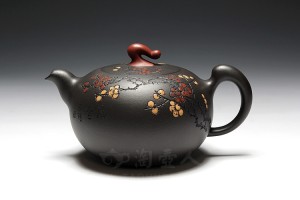 《紫气东来》壶沿袭了苏敏老师一贯的制壶风格,造型古雅、刻绘秀美。此壶特色则在于壶钮。红泥制成曲线流畅的壶钮,赋予了整壶动感之美,更点明了“紫气东来”这一主题,又与沈汉生老师满刻壶身静静绽放的梅花形成动静结合之势。如此好壶,怎能令其蒙尘?作品编号:014510容量: 440CC 作者:苏敏 泥料: 原矿黑泥