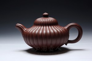 狄新陶,2012年国工,师从研高、筋纹器名家沈建强,狄新陶老师善制筋纹器,狄新陶老师善制筋纹器,280cc壶体筋纹勾勒,分为上下六瓣菱花,交错吻合,如齿轮咬合紧密,把生动流畅的筋纹纳入精确严谨的结构之中,凹凸相接,体现的那种秩序的精巧之美令人赞叹!