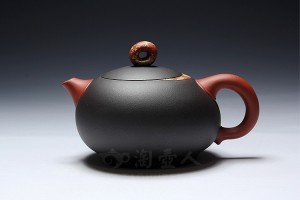 《星月壶》于2010年被徐州博物馆珍藏,壶体饱满丰润,圆融秀雅。蒋升老师选用原矿泥料制壶,泥色巧妙搭配,红泥制成壶流、壶把,壶钮与盖身衔接处以五色土制成,环钮若暗夜银月,散发出皎洁的月光,意蕴幽美…