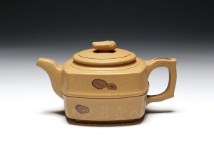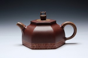 此壶为标准的方器造型壶,方器造型方中藏圆,线面挺括平正,轮廓线条分明,给予人们干净利落,明快挺秀之感。作为历来最为出色的方器造型之一的六方壶,将方器的精髓都表现得淋离尽致,壶身与壶盖紧密相连,而四方转动皆吻合,壶钮双与壶身相呼应,采用六方圆体造型,使紫砂壶的造型更加 生动、形象、活泼。作品编号:002638容量: 350CC 作者:周志良泥料: 原矿底槽清 款型: 仿古