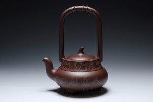 黄丽萍老师《北瓜提梁》壶十分耐看,壶颈高,云肩,身扁,偏腹鼓,瓜柄钮,盖形简洁流畅,口盖稳合严密,壶底带三小足。壶把以圆角方形提梁高悬壶体正上方,线条飘逸优美。整器造型浑圆敦厚,典雅素丽,造型简练,工艺精湛,精巧中透出自然之气,为壶中精品,而且设计独到,用料上乘,造型乖巧,让人爱不释手。