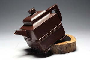 “古鼎方钟”壶,邵顺生老师将古方鼎和方钟的造型精美融合,壶体方正敦厚,古朴庄严。各部四方,棱角分明,造型别致,做工精细,点线面清晰明确。壶体流把、盖面、腹部腰带线线条流畅,与壶体形成刚柔并济之势。此壶于1998年5月由无锡博物馆收藏,升值潜力极大,允克用藏之品,推荐。