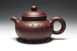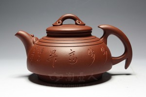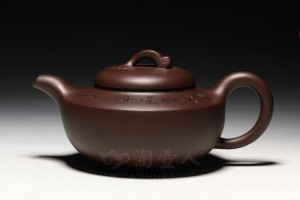 束旦生,字石雪,研高。1944年生于蜀山,1958年进厂,师从任淦庭、谈尧坤老艺人,善创作设计制陶,尤擅长陶刻。对书法、绘画、篆刻、陶艺、紫砂史等方面均有独到研究,被誉为“艺术成就陶艺家”。 《如意》壶,壶体造型端庄流畅,肩部棱线分明,流把润泽流畅,老紫泥泥色最是温润,手感最佳。 壶肩处陶刻“世事相逢每如此,好怀百岁几回开”,束旦生老师用如意壶钮彰显出了中国人最淳朴的心愿。