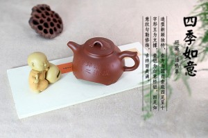 汤鸣皋老师是2005年研高,江苏省工艺美术名人,经顾景舟先生细心指点,多次获奖,作品认可度极高。这款《四季如意》造型新颖而独特,陶刻“清虚淡泊,归之自然”,收藏价值高,推荐!!