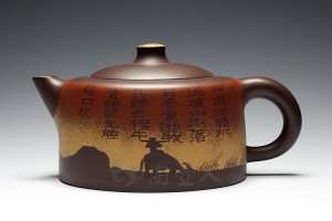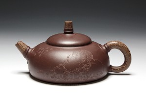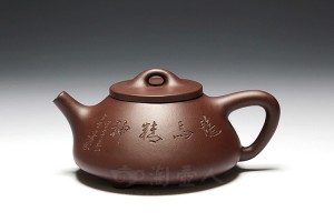 王涛老师这把《君子》壶,原矿底槽清制壶,泥色润泽,敦厚沉稳。壶体宽和,雍容古雅,几多君子之风。老师自制自刻,壶体反面光素,正面陶刻“落笔撼五岳,成诗凌九霄”, 君子诗情豪迈,意气风发,给此壶增添几分神采!