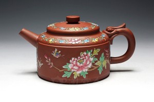 黄丽萍老师这把底槽清“龙团壶”,壶身为敦厚的圆柱体,气质沉稳,直流出水利落断水彻底,龙行飞柄霸气十足,平盖磨盘钮,壶体简单的线条修饰,简洁大气。 壶身、壶肩、壶盖运用彩釉装饰,正、反面大朵的牡丹花,蝴蝶翻飞,富贵荣华;壶肩壶盖清丽的缠枝花纹,艳而不妖。美!