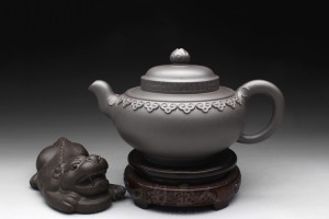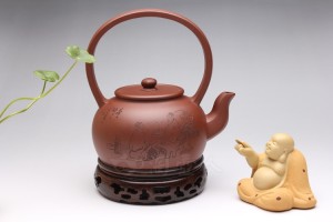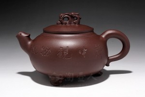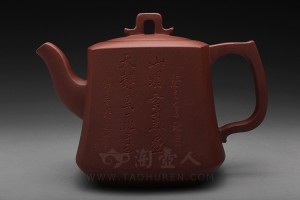 此壶型在吴永明老师手里也制作出了其精髓,整款壶显得优雅之极;一脱尘俗,不务妍媚,朴雅坚致,风格优雅悦目,流畅灵活;壶底刻有“怀人心造·大彬提梁”行书,刀工精美,独具匠心,妙手偶成,实为不可多得的一款好壶!(壶的陶刻各不相同,体现唯一性,更具收藏价值。)