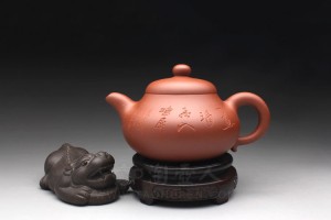 吴永明老师采用原矿库存金黄朱泥全手工制竹鼎,将花器手法表现的淋漓尽致,游刃有余。朱泥制成的340CC大品稍不小心极易造成壶体爆裂,而此壶胎薄体轻却又做工严谨,足见作者手法高明。