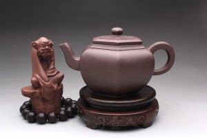 六方壶体,泥片镶接,制作难度很大,想要做好到位,没有相当的功夫不敢上手。壶身矮而不扁,线条流畅,各个转折面弧度过渡自然,欲张欲驰,从容不迫。