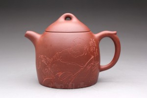 此壶极是红润,砂感十足。小巧可爱的宝珠的子、曲线优美的耳把、壶嘴无一不衬得壶身珠圆玉润。正面刻绘一只翩翩起舞的孔雀,尾翎似开未放,芭蕉竹衬得孔雀更是优雅高贵,反面草书“空谷幽兰”四字,气势喷薄而出杨志仲,1963年出生于宜兴书香门第,自幼喜爱书画,八十年代从业紫砂,师从高级工艺美术师邵新和。2004年考取江苏省经贸学院(工艺美术设计专业),为了提高艺术综合素质。2006年5月参加中国工艺美术学会高级研修班进修。2007年参加江苏省陶瓷实训基地全手工制壶培训。2009年考取南师大工美本科。2011年参加