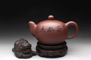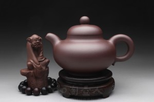 华颖壶,“摘手圆、盖圆、壶身圆,三圆垒叠在圆壶底上,分外精神,遥望犹如花苞初绽。” 细观陈顺培老师的这款紫泥华颖壶,色泽紫中微红,很是沉稳内敛,小培老师的壶风多浓厚古雅,这把470cc的大品更是彰显浓郁的拙味。壶身略扁但饱满而壶韵充沛,线条丰润流畅,鼓起的圆盖与壶颈精美吻合,流把钮皆古拙敦厚,大品上亦可有俏皮可爱之气,毫无冲突之感。