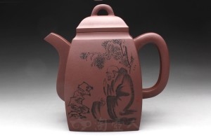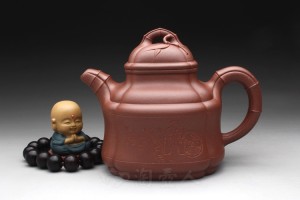 四方竹顶壶为造型优雅的经典器型,壶身方中寓圆,刻隐角竹节纹。饱满圆湛,底、肩、口、盖,端庄稳重,有节奏之美。立面筋线,自下而上贯通。嘴粗,饰四条竹纹线,把亦方中带圆,刚劲有力,竹节纹与壶身统一。盖为四方隐角,纹线渐消失于盖顶。口盖为母子线,可转换吻合,贴切紧密。