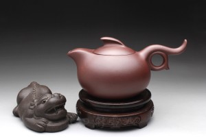 此壶由制陶状元葛岳纯采用于原矿朱砂泥精制而成,泥质温和,壶身曲线柔和流畅。这把壶弧度大,上面大量留白之处宜书宜画。整器显现出简朴大方的气度,是件“智欲其圆、行欲其方、刚柔兼施,允克用藏”的珍品。
