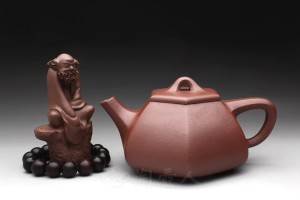 葛岳纯老师这把六方石瓢壶是将石瓢与方器结合的产物,三角几何壶身辅以六道棱线更显阳刚之气。底槽清色泽略显红润,壶身光素,更有端庄高雅之气。 与经典石瓢相比,保留了桥钮、直流、三角把等元素,但加了六道棱线,更显壶身的饱满有力、骨肉亭匀。壶嘴六方,棱形直流嘴暗接于壶身,壶把不仅考虑到了三角与方形的结合,更注重到了线条曲直过渡、粗细变换的细节,壶钮亦如是。 如此,增加了线条感的石瓢壶方中见圆,刚柔并济,和顺有利,更多了一份立体美,在视觉上带给人另一种享受。