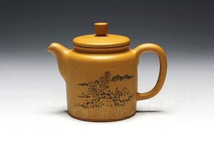 顾绍伟高徒潘国良,《砖方》一把,精在一个“方”上,四方身筒、四方嵌盖、方柱桥钮、长方耳把、梯形方流……无一不方。端端正正,气势轩昂。此壶最精妙之手艺在于壶内壁之泥绘,潘老师真可谓煞费苦心,工艺极难,乃收藏之精品!