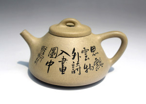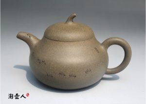 作品名称:石瓢作品编号:022853泥 料:本山绿泥容 量:220CC 此款作品由刘一飞老师采用原矿本山绿泥手制而成,使子冶更具神韵美感,骨肉亭匀,协调有致;壶体有刻行书以