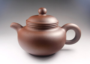 紫砂壶壶底宽大,放置稳重,壶身丰腴饱满,有如贵妇般优雅质气,壶把造型奇特,观赏性佳,壶嘴流基宽,微微上翘,整体显得十分清润雅致,于沉着中见优雅。