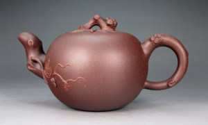 宜兴陶艺新秀江晓燕《葡萄》一把,整个作品布局严谨,疏密有致,将自然之魂与紫砂艺术交融,展现于眼前的和谐之风,自然之美,可谓一大视觉盛宴,观赏性极大,为不可多得的作品。