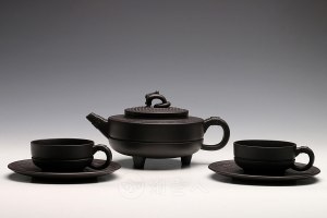 采用了原矿黑泥制作而成,壶容量为300cc,这款筋纹壶,观其工艺和造型,真令人拍手叫绝,壶身略微扁圆形,平肩衬托之下更觉壶身扁平,茄蒂为壶钮,拿捏舒适,口盖子母线精确地将壶盖、壶口分割开来,大气十足,一变嘴,出水爽利,耳形壶把随身势,线条流畅,比例得当,整款壶力蕴十足。